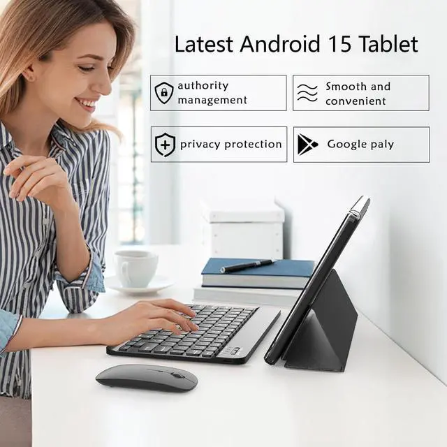 2 in 1 Tablet has passed GMS certification,tablet comes with bluetooth keyboard, wireless mouse and foldable protective case, it can flexibly turn tablet into a laptop mode or computer mode.