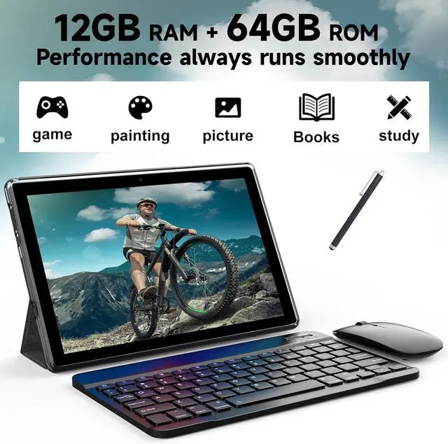 Gaming android tablet is powered by the latest android 15 OS, compared to android 14, android 15 tablets run faster, protect privacy and security, and provide a more personalized, easy-to-operate system experience. 2025 newest android 15 tablet adopts 12GB (4GB fixed memory+ 8GB virtual memory) RAM, 64GB ROM 1TB expandsion, powerful Quad-core 1.8Ghz processor with high performance and low power consumption, it supports you to play all kinds of tablet games without worrying about lag.