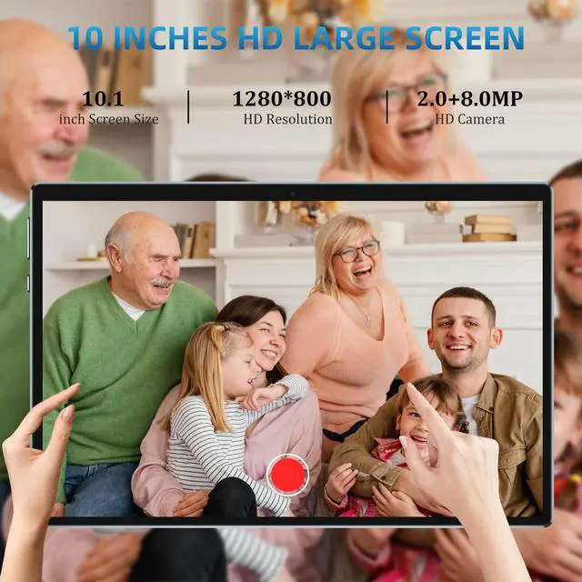 This tablet adopts a 10 inch high-definition display screen. Resolution 1280x800. Larger screen, viewing angle, and realistic colors. Provide a comfortable visual experience while watching videos, browsing web pages, and learning online. Equipped with front 2MP and rear 8MP high-definition cameras. Ensure good results when taking photos and videos.