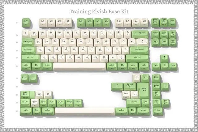 ELVISH BASE KIT: It covers standard 60% through TKL layouts and will work as a base for full-size layouts. There are also alternative modifiers for enthusiast layouts like HHKB, Winkeyless, 65%, 75% layouts. Finally, the set also contains an ISO enter key and other keys for ISO layouts. All keys have have Latin sublegends for the alphas and side-print legends for modifiers.