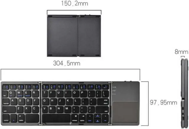 16. Keyboard Size(L*W*H): 152 x 97 x 12 mm/5.98" x 3.8" x 0.47''(Fold)