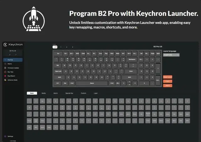 The B2 Pro is an ultra-portable, lightweight wireless keyboard that supports 2.4GHz, Bluetooth, and wired modes. With ZMK customization, you can connect your phone, tablet, PC, and Mac simultaneously using three Bluetooth connections and one dedicated 2.4GHz dongle.