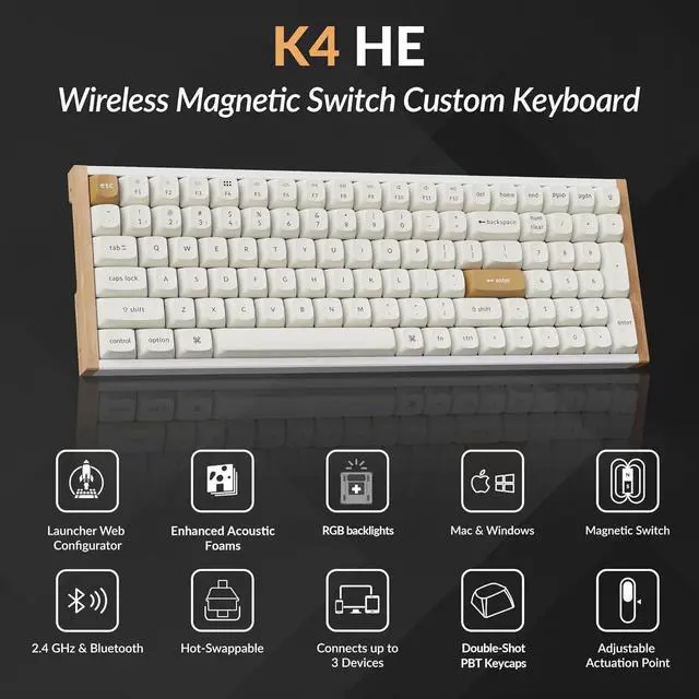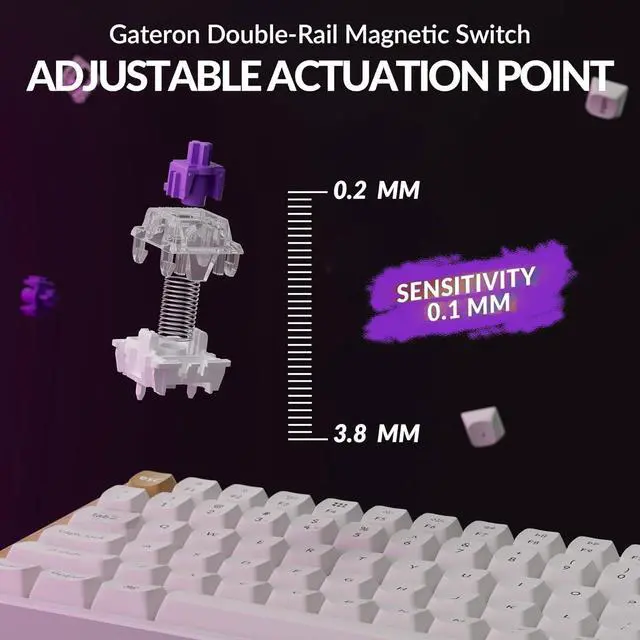 A fully customizable 96% layout wireless keyboard with magnetic switches a breakthrough in switch technology, whichinstead of physical contactsuses magnetic sensors to measure actuation depth, putting you in total control over the response of each and every switch.