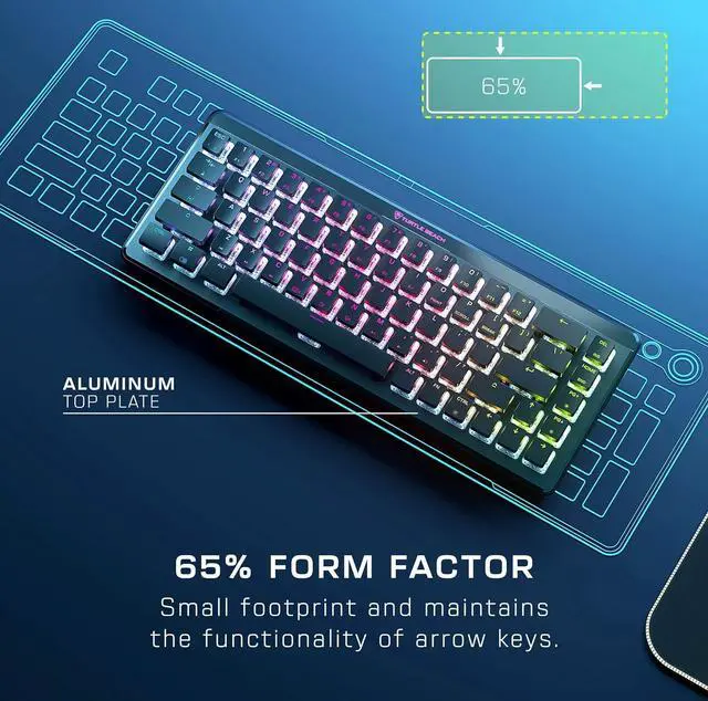 Wireless 65% mini form factor with arrow keys