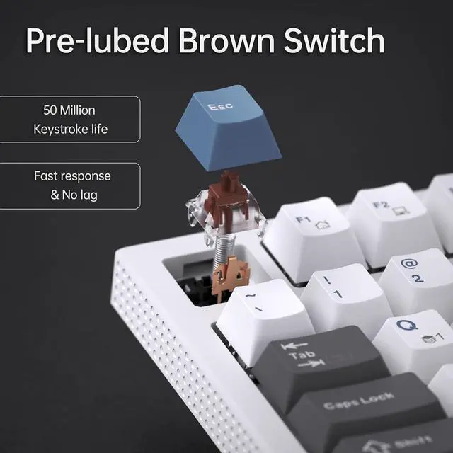 Superior Mechanical Keyboard Experience: The brown switch strikes a perfect balance between the red and blue switches. There's no pronounced "click" sound, and the tactile feedback is gentler. Ideal for users who desire some feedback without disturbing others. Pre-lubed switches and stabilizers elevate key feel and performance.