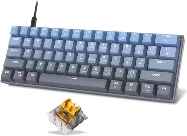 Comfortable Typing Experience And Full 61 Keys Anti-ghostingMageGee yellow switches mechanical keyboard adopted with classic Blue switches, that responds fast with no lag, this mechanical keyboard will offer you wonderful tactile feedback on each keypress. The stepped layout can also provide you with an ergonomic angle for typing.
