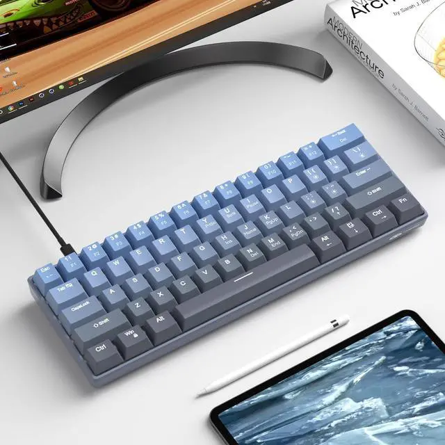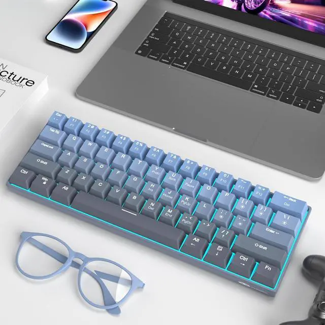 5-Sided PBT Heat-Sublimation Blue Gradient keycaps60% 5-sided PBT heat-sublimation blue gradient keycaps keyboard is ergonomically designed to be both aesthetically pleasing and easy to carry on the go, ensures lettering that doesn't scratch off. Closed key caps, more advanced technology, clearer fonts and better light transmission.