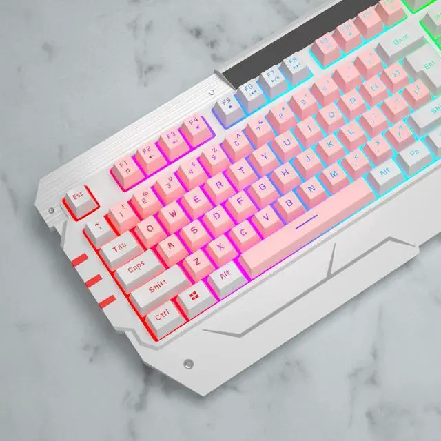 Backlit Gaming Keyboard: 7 different Lighting modes & effects, 4 backlight brightness levels, adjustable breathing speed. The gaming Keyboard is built to withstand the average liquid spill. The folding stands on the back can offer comfortable typing angle, and the non-slip pads can prevent the keyboard from moving back and forth during the game.