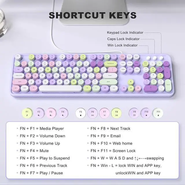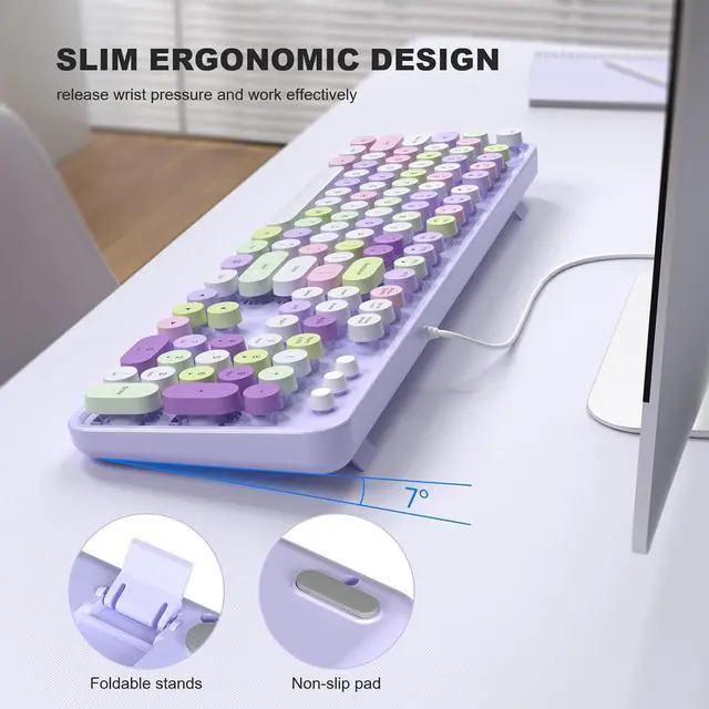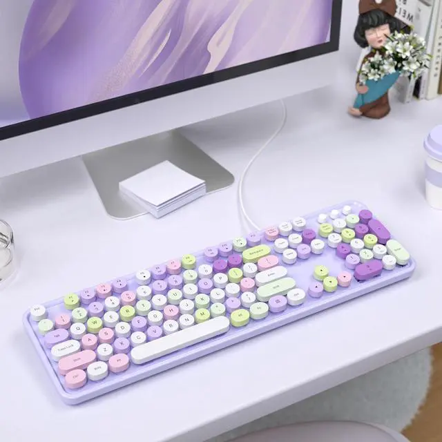 The MOFII full-size color wired keyboard brings you a unique typing experience. With retro round keycaps design, every keystroke feels like using a classic typewriter, making your work or gaming experience more enjoyable.