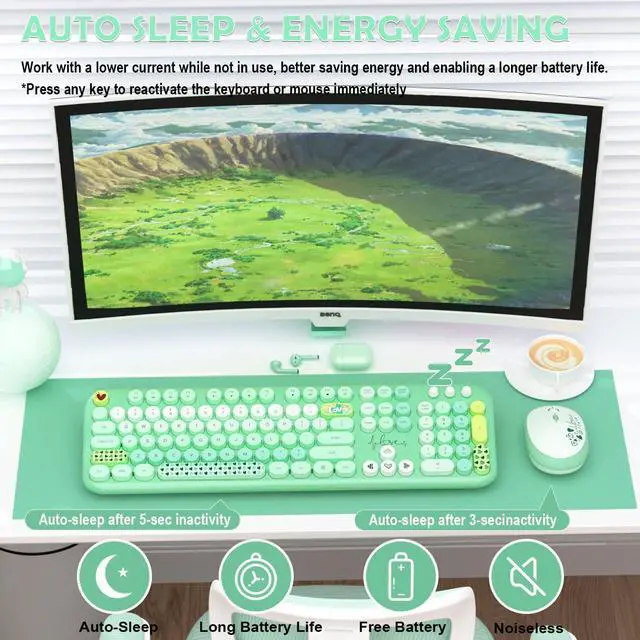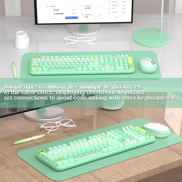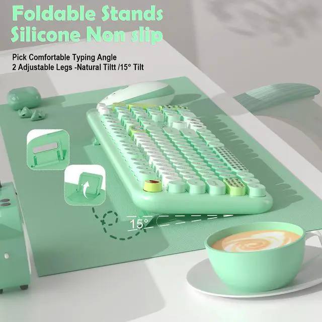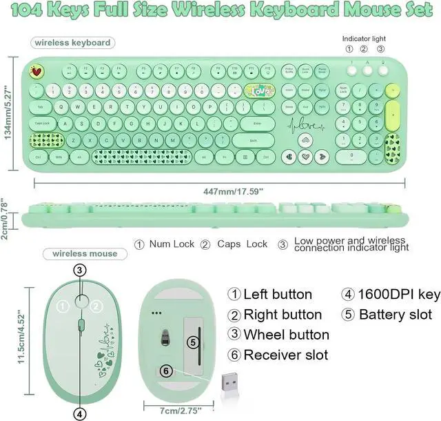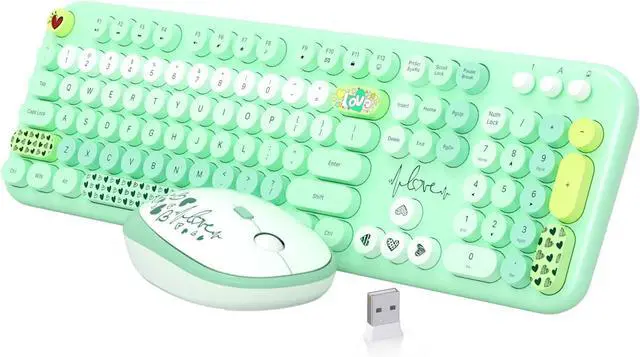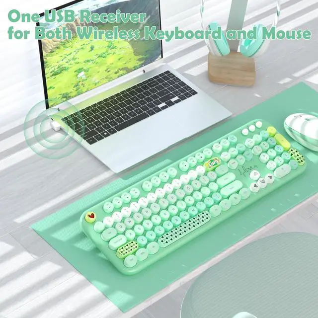 Retro Floating Round Keycapscolorful keyboard and mouse wireless with vintage typewriter-inspired retro floating rounded keycaps, gives you the most comfortable typing experience and adds some much needed spunk to your desk.The crisp key sound takes you back to the industrial era, and the independent round keycaps facilitate finger positioning. The floating keys under your fingertips are comfortable and skin-friendly.