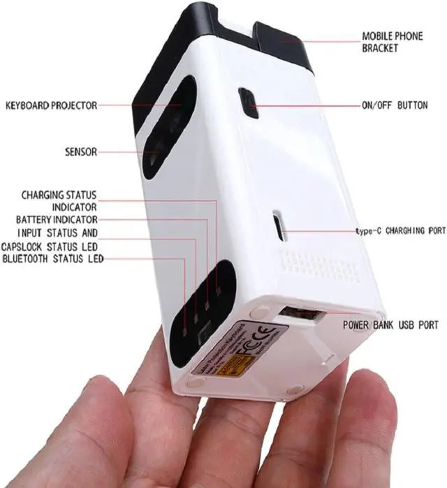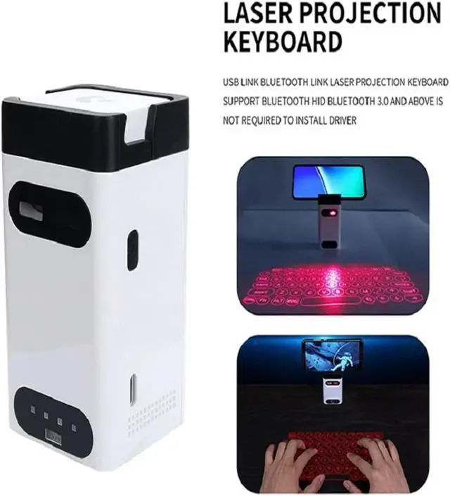 This product needs to be placed on a flat, clean, opaque, non-reflective interface. There is no obstacle within 5cm of the circumference of the host computer and the projection keyboard. It will affect the clarity under high brightness and the sun or strong light. Most Bluetooth-enabled devices can be used, regardless of model, including mobile phones, tablets, laptops, desktops! This product supports: Android system, Apple IOS system, Windows system, MAC OS system, Wndows Phone system, BlackBerry Z10 / Q10 and above models, it does not matter with the mobile phone brand model, as long as the above systems are supported. Laser projection keyboard This is the Bluetooth name of the device Note: 1.The mouse function is a button with an arrow at the bottom of the keyboard, which is used to switch the mouse. After clicking, the mouse's arrow will appear on the device screen. You can operate by sliding in the projection area. 2.IOS systems only support keyboard functions. Mouse function is not supported. 3.This is English version (QWERTY) keyboard, not support other version keyboard.