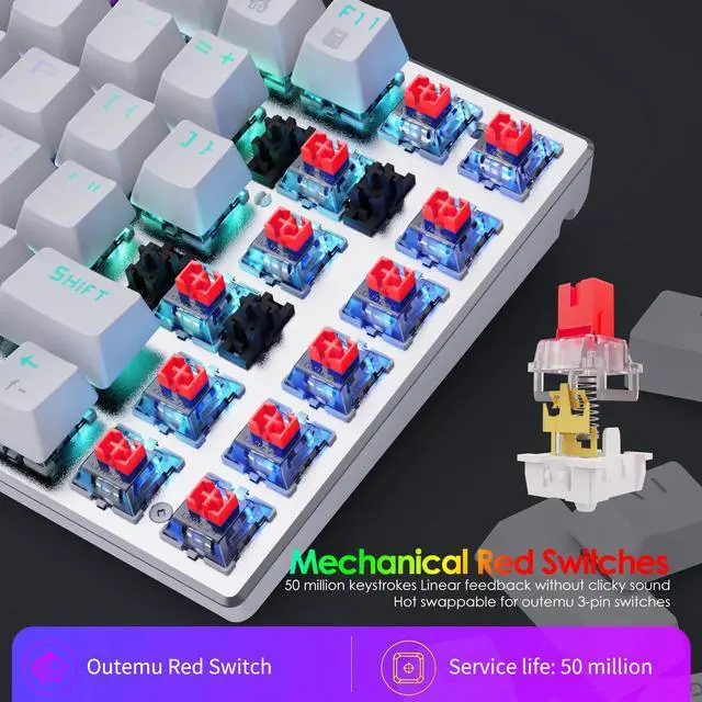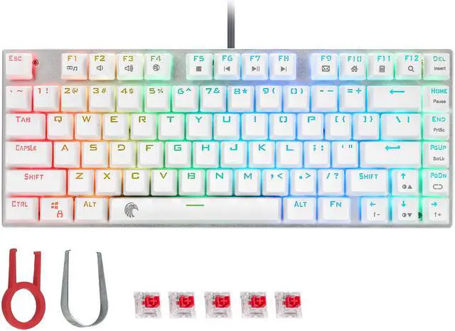 Including 5 red switches, switch puller and keycap puller, you can replace the switches or clean the keycaps thoroughly by yourself with them if need.
