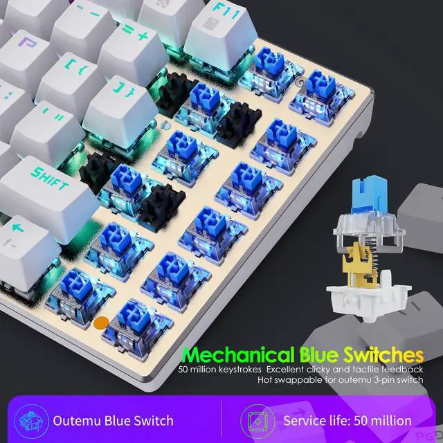 Each key is controlled by switches independently to make sure gaming with high speed and preciously, Locking Win with FN+ Win key avoids buttoning Win key by accident when you play games. 8 gaming presets lighting modes provide incredible visual experience.