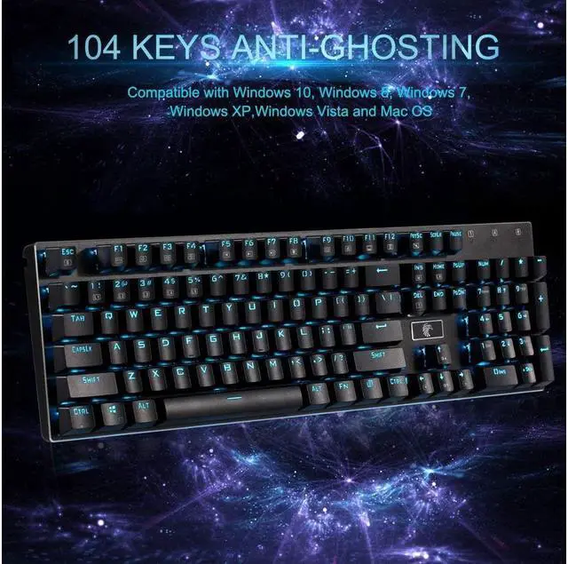 • Mechanical blue switches: Custom mechanical blue switches are designed for longevity, responsiveness and durability with clicky click and tactile feedback for typing and gaming.