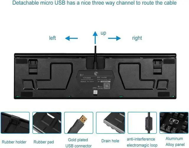 Strong Durability Made of matal and ABS with plate-mounted mechanical keys and switches which stand up to tough industrial /office /gaming application. Custom mechanical switches designed for longevity, responsiveness, and durability. which control each key independently. And you can replace the switches by yourself if it is broken. Key Shortcut Easy to access to media play, volume, calculator, ect with FN+F1~F12 Customized