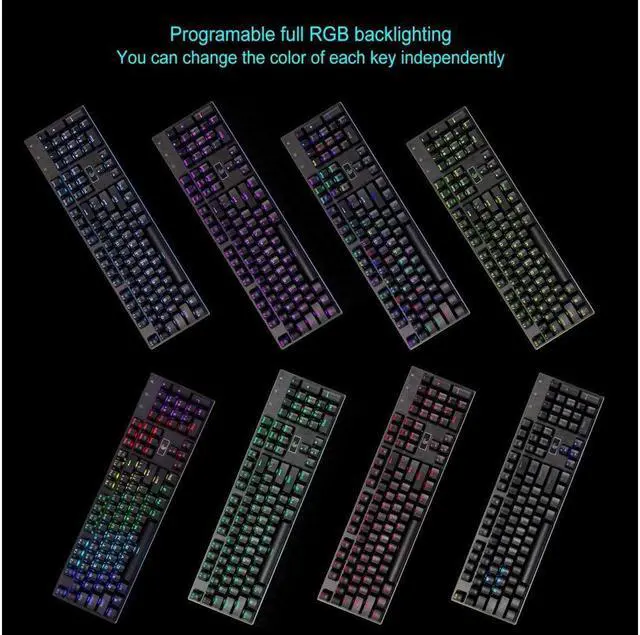 • N-Keys Rollover: 104 keys Anti-Ghosting.All 104 keys are non-conflict for ultimate gaming performance with high speed, which each key is controlled by switches independently.