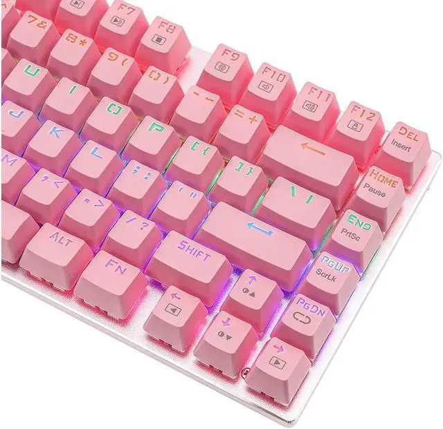 Easy Installation Just plug and play, USB interface, No need driver and software. The including keycap puller is for easy cleaning and maintaining. Compact&Ergonomic Design With 81 keys, it is smaller to save space on your desk and more portable. The stepped keycap makes it sleek to fit your hands easily to prevent fatigue. Provides Windows Key lock for gaming Strong Durability Made of matal and ABS with plate-mounted mechanical keys and switches which can stand the tough industrial /office /gaming application. The keyboard is waterproof and dust-proof. Custom Mechanical Switches Red switches which offer silent click and precise tactile feedback for typing and gaming control each key independently.