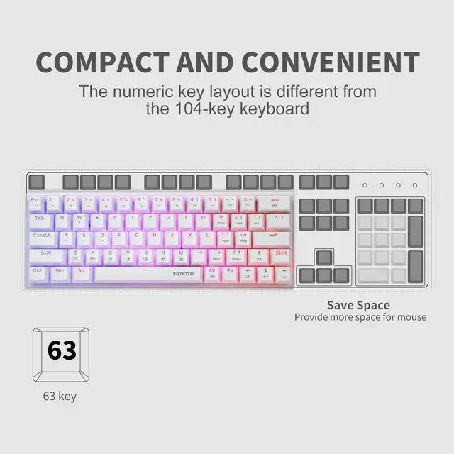 With 63 keys, it will save a lot space on your desk. The size is smaller, the control is easier