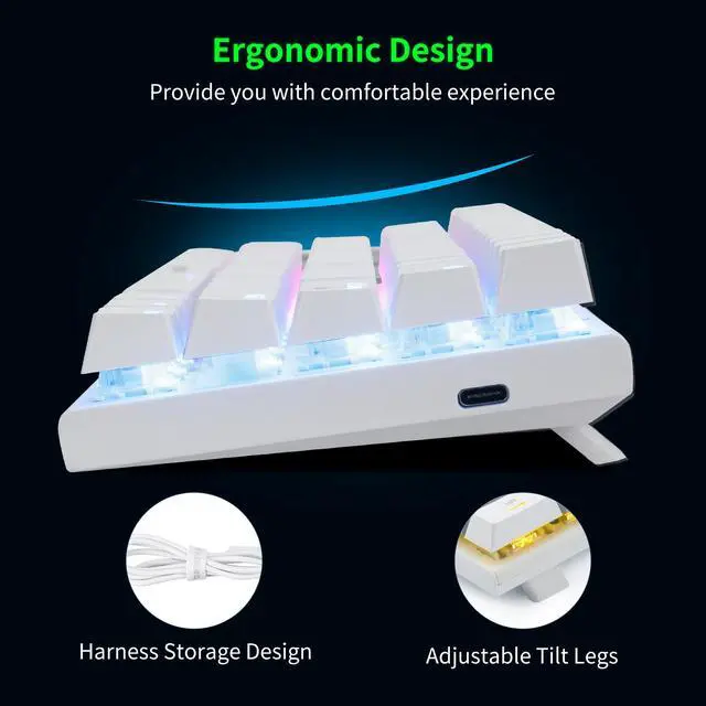 60% Compact Mechanical Keyboard: The mini mechanical gaming keyboard adopts an ultra-compact 63 keys layout and advanced metal panel design, which is durable, portable, and space-saving.