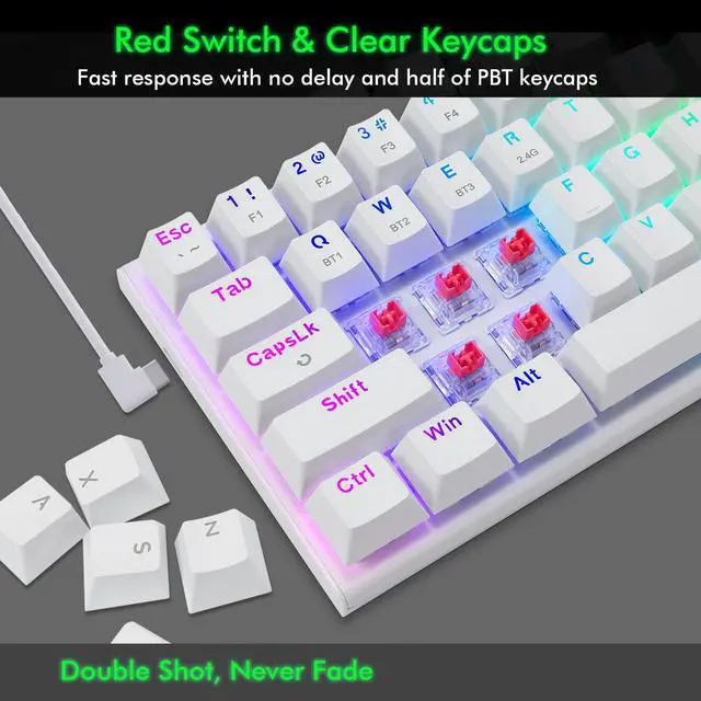 Comfortable Typing Experience And Full Keys Anti-ghosting: The red switches mechanical keyboard adopted with quiet and responsive red switches, that responds fast with no lag.
