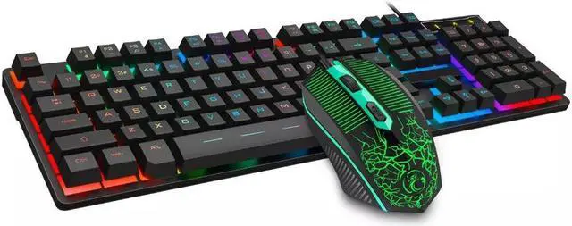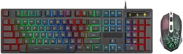 Wired Gaming Keyboard and Mouse Combo Ergonomic Design USB Color Backlight Rainbow