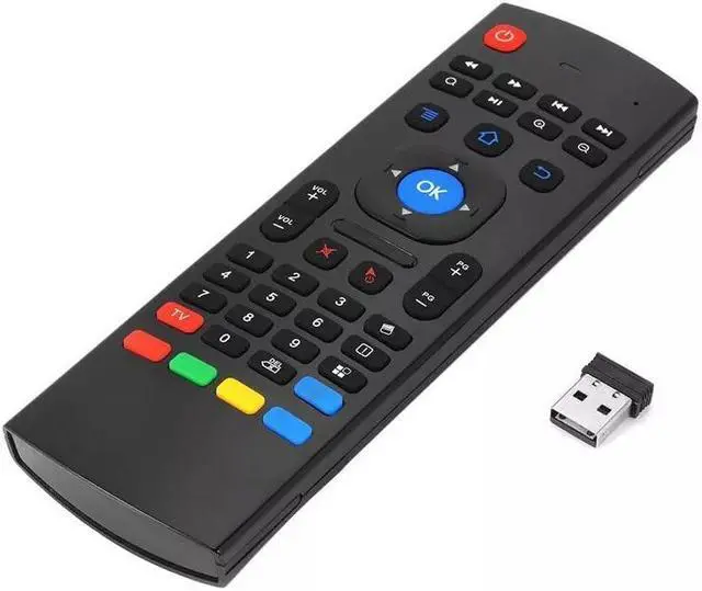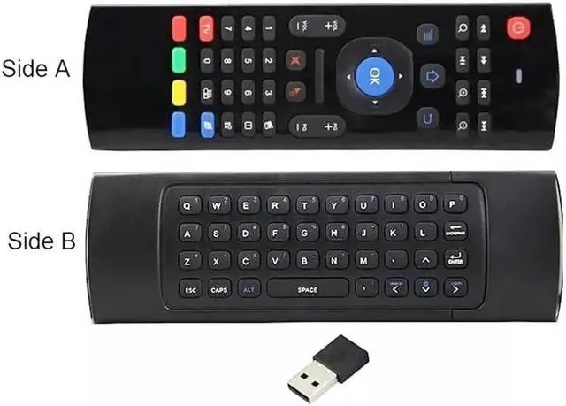 2.4G Air mouse with Keyboard, USB dongle receiver. Plug and play. Suitable for most smart android TV box with USB Port.