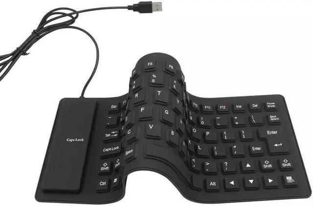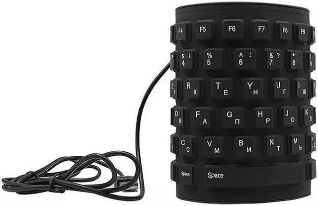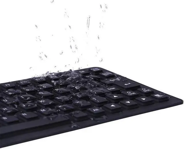 Looking for a new portable mini keyboard? This black silicone roll-up USB keyboard is convenient, lightweight, portable, and ultra slim. The soft silicone allows for silent typing. There is no need to worry about having drinks near the keyboard; this waterproof keyboard can easily be wiped clean or washed with soap and water. The keyboard is also dirt and dustproof, making it ideal for travel and many work environments.
