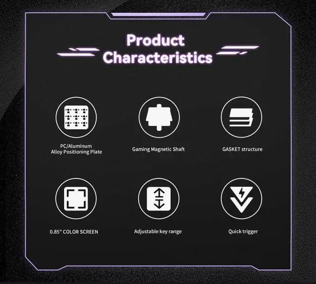 Magnetic Switch KeyboardMagnetic Switch ensitivity range 0.1-2.0mm,adjustable accuracy is 0.1mm.Smoothly adjusts key action to allow mid-motion repeats without locking in actuation points.You are free to customize it to your needs to fully satisfy the gaming experience!