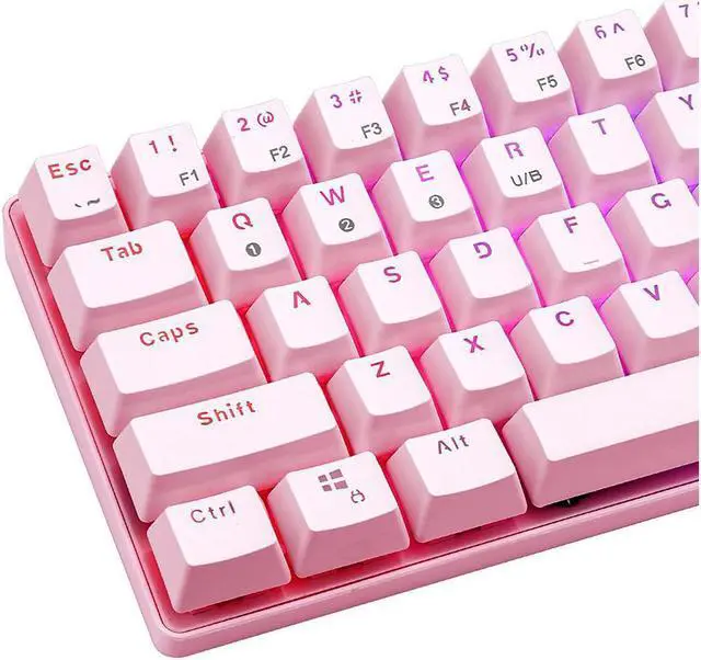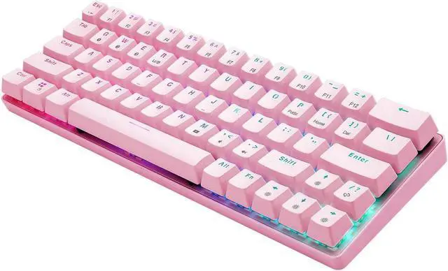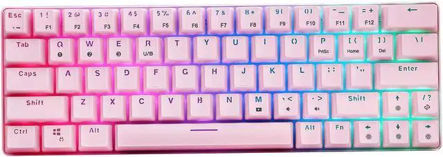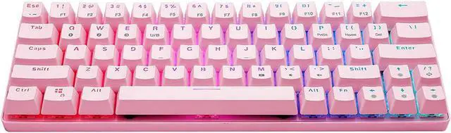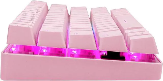 It is suitable for office or gaming. Easy Cleaning and Maintenance Including 1 keycap puller, you can use it to clean or replace the keycaps easily. Product Description - Mechanical keyboard - Compact design with 63 keys - Double-shot injection keycaps - 1500 mAh rechargeable long-lasting battery capacity. - Bluetooth 5.0 connection - USB Type-C cable - Adjustable RGB backlight - Red switches - Nominal life-time up to 50, 000, 000 times - 1-year guarantee Packing list - 1 x Keyboard - 1 x User manual - 1 x Key puller - 1 x USB cable