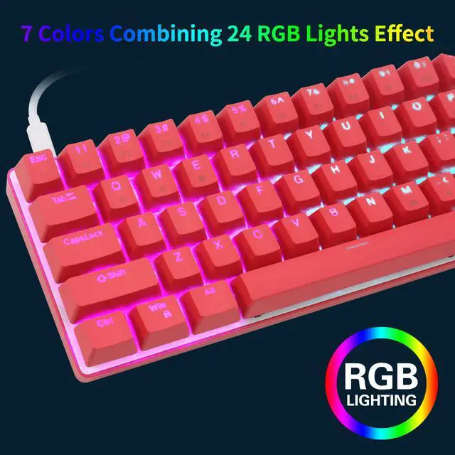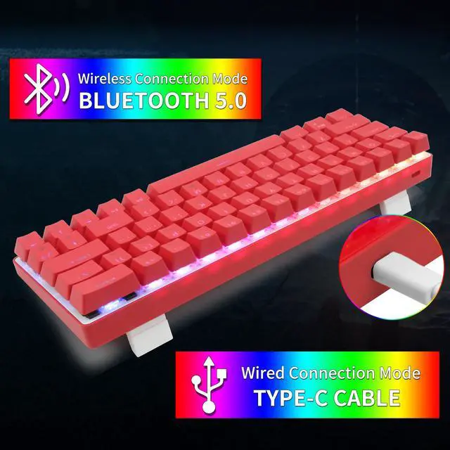 Compact Keyboard CQ63 is a 60% layout (63-key) RGB backlight compact Bluetooth mechanical keyboard that retains shortcut, arrow keys, and comes with dedicated screen capture key. RGB LED Backlit Chroma Dimmable FN+? /: 15 backlight mode, make a beautiful sight on your desk.