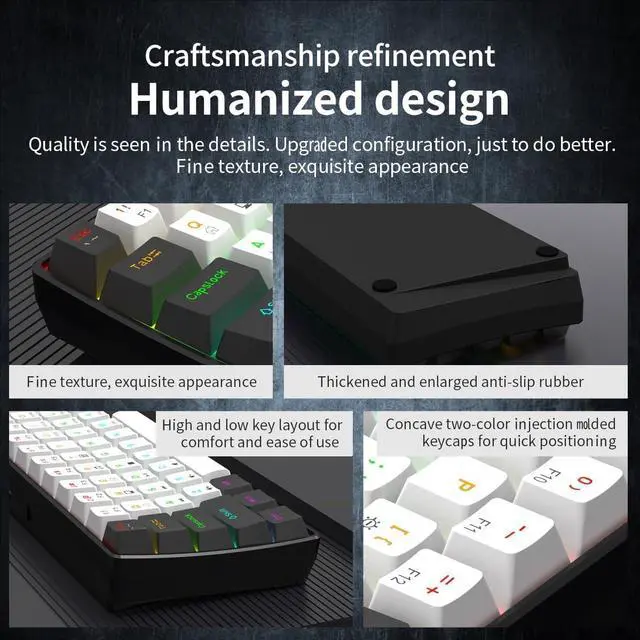 Classic 60% Compact DesignThis 60% gaming keyboard is the right size for all environments, business travel, gaming, office, home use, no Numpad tablet, more practical for gamers and typists, and more space for your desk.