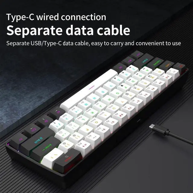 Simple and elegant personalityFor some small keyboards, if you are tired of monochrome, you can choose this elegant and mature black and white with classic style. In addition, the detachable cable makes this portable gaming keyboard simple to connect and easy to carry. The USB Type-C interface also provides a more stable transmission.