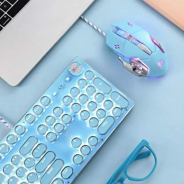Mechanical Blue Switch Gaming Keyboard - Mechanical Blue Switch Gaming Keyboard (Cherry Blue Equivalent) for ultimate gaming performance. Retro keycap looks like a classical typewriter, brings you comfortable typing feeling & stable clicking touch. The Mechanical Keyboard Keys offer medium resistance, audible Click Sound & Tactile Feedback. Sensitive and Responsive. Easy to press and fast response.
