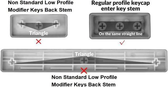 If your low profile mx keyboard back stem is not in a straight line,then the big modiffier keys can't use.It's not compatible with old Keychron / Cherry 10 N low profile keyboard.