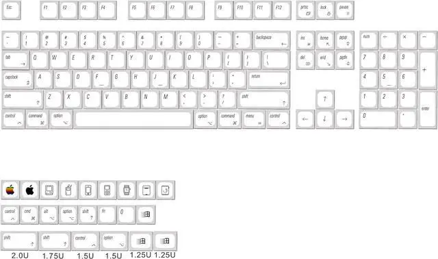 1x 127 keys Dye-Sublimation Mac Style Low Profile Keycaps,no keyboard included