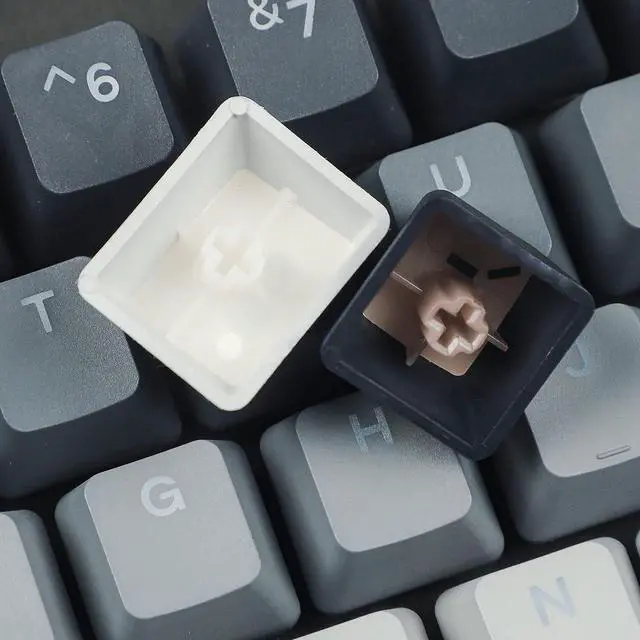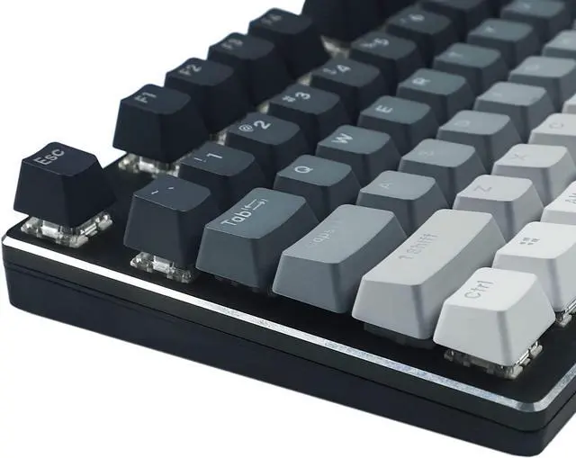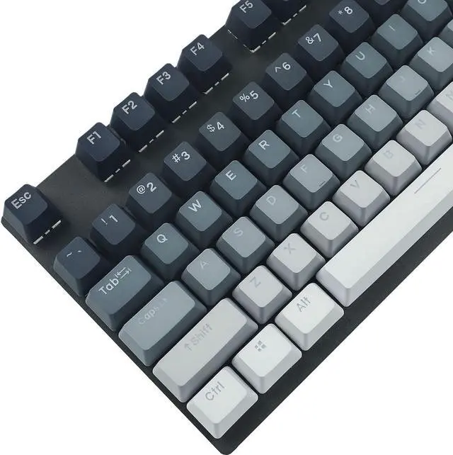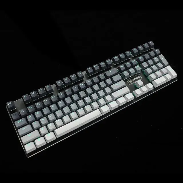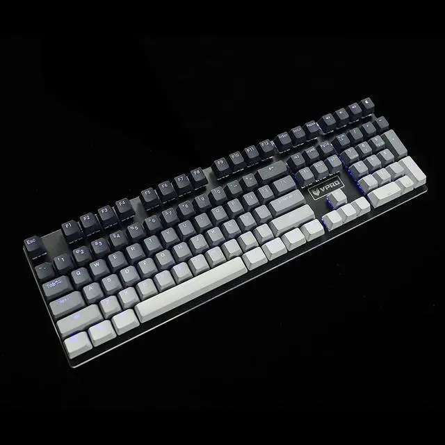 The keycap is made of PBT material,it's double shot and dyed which can let the shine through.