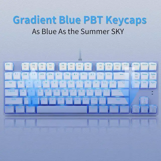 PBT gradient Blue Keycaps Our keycap design uses a fresh and clean gradient blue, so that you can sincerely feel pleasing to the eye in the process of use.
