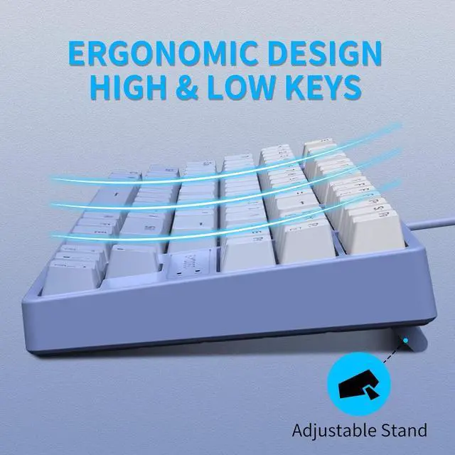 Ergonomic Tenkeyness Keyboards Stylish colorful keycap 75% layout, double-shot injection non-slip suspension keycaps, splash-proof design, durable metal panel enough to protect it from scratch, also firm kickstand feet adjustable typing angle.