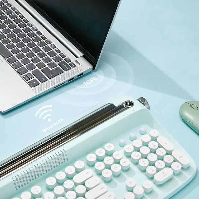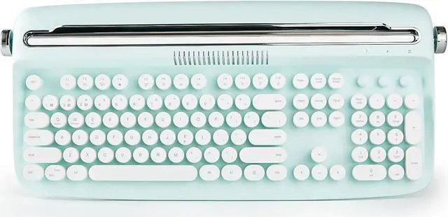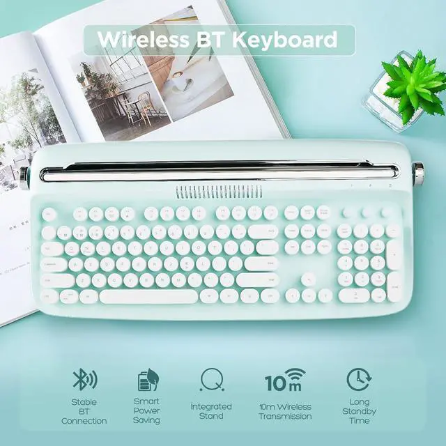 The cute B503 retro keyboard holds 104 keys. Different from the B303 and B305 who holds 86 keys, the B503 is full layout Bluetooth keyboard that holds numpad.