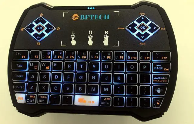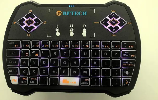 ??BFTECH 2.4GHz Mini Wireless QWERTY keyboard+TouchPad + LED Colorful backlit +Extra Left/Right buttons.