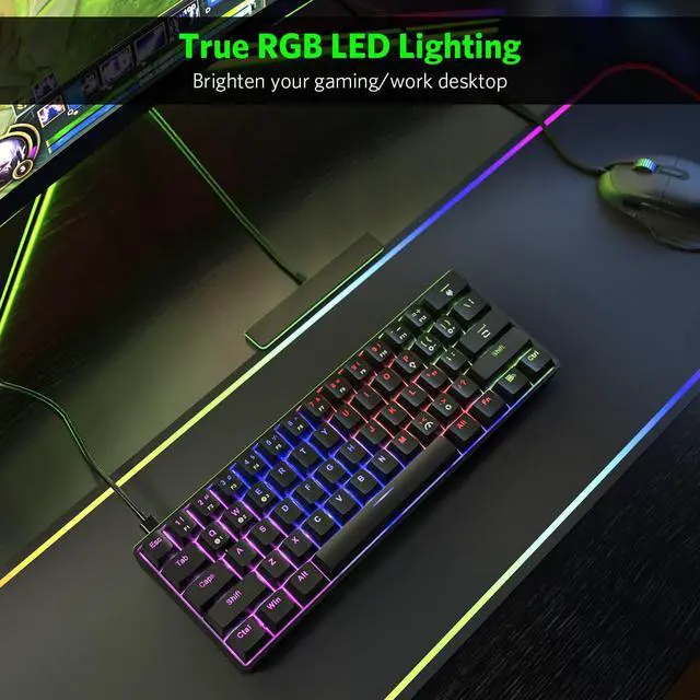 Compact but Comprehensive - Space-saving 60% layout but full keys Anti-ghosting, allow multiple keys to work simultaneously. Suitable for more size desk, and keep your desk clutter free, a mechanical keyboard works for business travel games office home use.