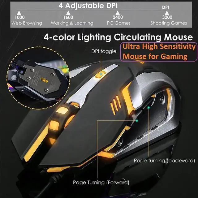 Keyboard and Mouse,Gaming Keyboard and Mouse,Light up Mouse and Keyboard Combo,Wired Keyboard and Mouse combo,Computer Keyboard and Mouse, Orange Backlit Keyboard LED keyboard and mouse for X-box PS-4