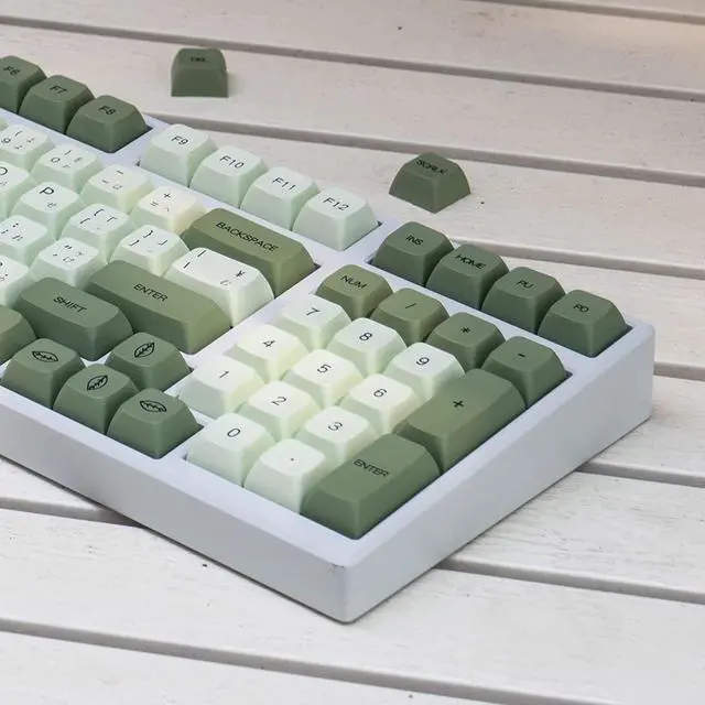 Super High-quality PBT KeycapsThese matcha green keycaps are made of high quality PBT material and an anti-grease coating. The legend on the keycap is very clear and cute. The keys feel super soft to touch, it is more comfortable to use and no shiny grime buildup with continuous use.