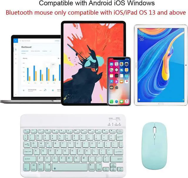 Wide Compatibility: The keyboard and mouse compatible with Apple iPhone iPad Mac iMac Android Windows Samsung tablet smartphone and other Bluetooth enabled mobile device, Such as Samsung Galaxy Tab/Note/S, Surface Pro, MacBook Pro, MacBook Air, iPad 10.2 / 9.7 5th 6th 7th 8th gen, iPad Air 10.5 / 10.9, iPad Pro 11/ 12.9 2nd 3rd 4th 5th generation, iPad Mini 5/4/3 etc. Bluetooth mouse compatible with iPad OS/iOS 13 and above, turn on