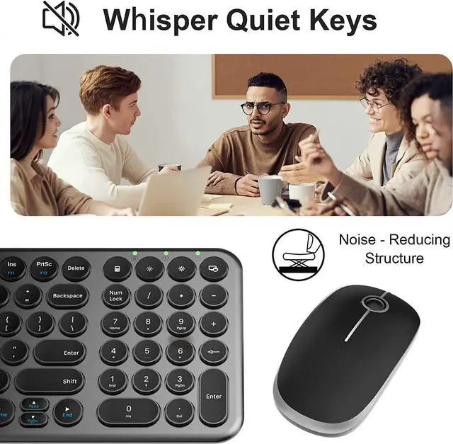 QUIET KEYBOARD MOUSE SET: Noise-reduced scissor-cross Cute Round-Key best suit working in a quiet environment. Also, you will fall in love with the smooth touch of the optical mouse and the matte-like surface of each key.