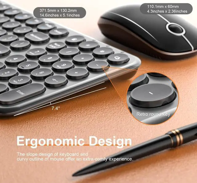 RETRO ROUND KEYBOARD DESIGN: Vintage typewriter-inspired rounded keycaps offer you visual enjoyment and please you with every single press & click. The ergonomic slope design of the keyboard gives you the most comfortable typing experience.