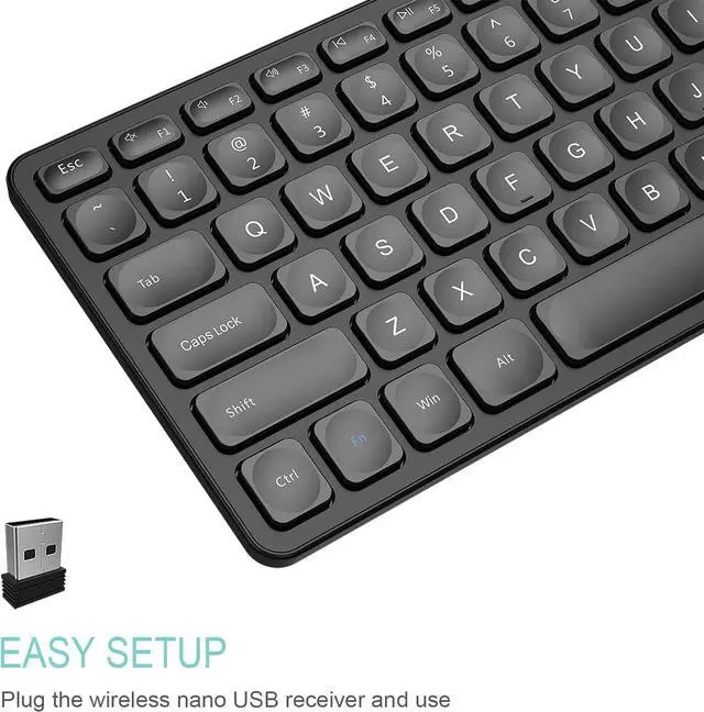 Easy Setup: Simply insert the nano USB receiver (stored inside at the back of the keyboard) into your computer and use the keyboard instantly.