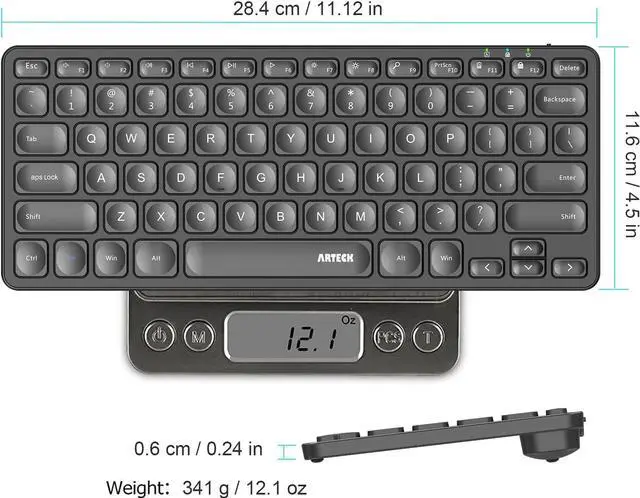 Ultra Thin and Light: Compact size ( 11.12 X 4.5 X 0.24 in) and light weight ( 12.1 oz) but provides full size keys, shortcuts for comfortable typing.
