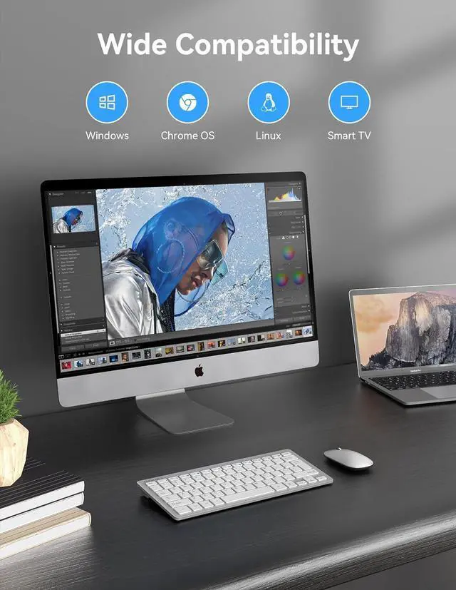 • Wide CompatibilityThis slim keyboard is compatible with a wide range of operating systems including Microsoft Windows 11/10/8/7/2000/XP/VISTA, Android, Chrome OS, Linux, and even Smart TVs. It is suitable for use with both desktop computers and laptops.
