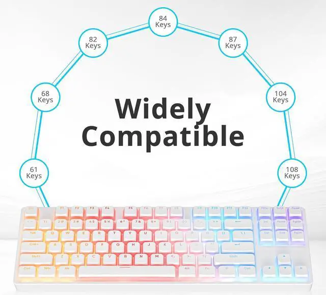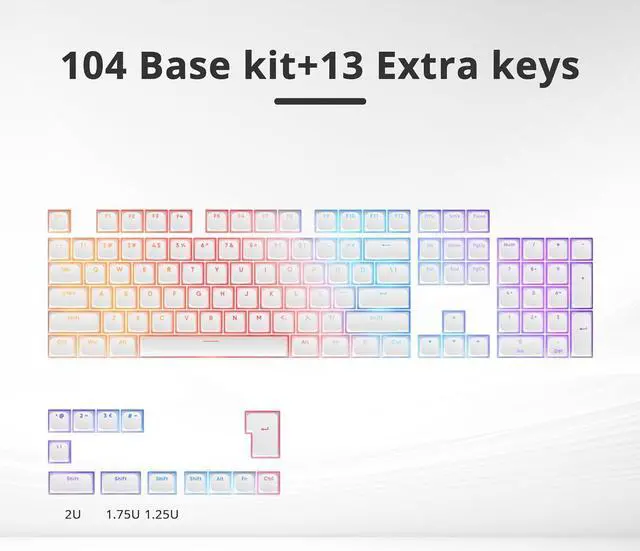What You Get-117 keycaps set include 104 standard keys and 13 supplementary keys. Its only keycaps, no keyboard included